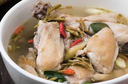 • ต้มยำไก่บ้านใบมะขามอ่อน